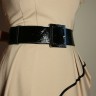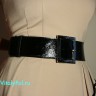 Ремень из лаковой кожи с прямоугольной пряжкой. Ширина 6 см. Черный.