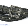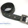 Ремень с кружевом "Круги". Пряжка - "серебро". Ширина 4 см. Черно-серый.