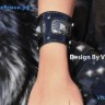 Браслет с объемными вставками кожи питона и металлическими заклепками. Стиль : "Нео Панк".