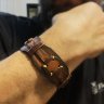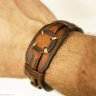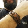 Браслет изготовлен из натуральной однослойной телячьей кожи. Кожа прокрашена в стиле "Винтаж" и обработана защитным составом. Не боится воды, не пахнет, не требует специального ухода.