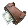 Особенность этой модели в том, что можно пользоваться кошельком, не снимая его с руки. Вы можете доставать и убирать сложенные вдвое купюры и банковскую карточку.