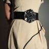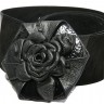 Ремень для шубы из "жатой" замши с пряжкой-цветком. Ширина 7,5 см. Черный.