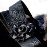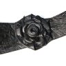 Пояс из "жатой" кожи с пряжкой-цветком. Ширина 7.5 см. Черный.