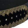 Широкий ремень с декором из бархата и золотой тесьмы.