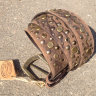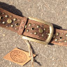 Ремень в джинсы кожаный. С металлическими заклепками. Коричневый. Ширина 4 см.