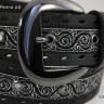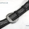 Ремень женский декорированный кружевом (черно-серебрянная цветовая гамма) и ручной перфорацией (орнамент из дырочек).