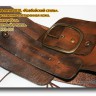Изготовлен из однослойной телячьей кожи. Хотя кожа достаточно толстая ( 1.8 - 2 мм), но очень мягкая и приятная на ощупь. Кожа стилизована под состаренную (ручная прокраска). Со временем затирается и становится еще благороднее.