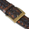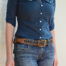 Передняя часть ремня проплетена полоской темной кожи. Орнамент в виде косички позволяет застегивать ремень на любую дырочку.