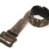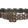 Акцент на уникальные металлические украшения и пряжку, а также эффектную форму ремня и ручную перфорацию (орнамент из дырочек).