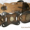 Декорирован ручной перфорацией (орнамент из дырочек) и стильными металлическими украшениями и пряжкой ("старая бронза" - антик).