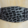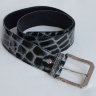 Ремень корсетный из лаковой кожи (тиснение "крокодил"). Два ремня в одном. Черно-серый