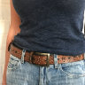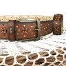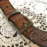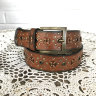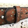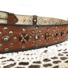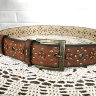 Ремень с кожаными украшениями и металлом. Терракотово-коричневый.