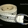 Ремень с кружевом и перфорацией. Ширина 4 см. Бело-серый.
