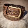 Ремень в джинсы кожаный. С металлическими заклепками. Коричневый. Ширина 4 см.