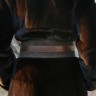 Надо отметить, что этот ремень действительно очень широкий. Его ширина - 9 см. Внутренняя вставка выполнена в виде ремня шириной 3 см. Благодаря этому достигается интересный эффект - "узкий" ремень делает акцент на талию, а широкий формирует красивый силуэт и элегантный перепад "талия-бедра", что невозможно сделать только узким ремешком (узкий ремень слишком резко "врезается" в одежду, появляются ненужные складки, а линия талии не подчеркивается должным образом).