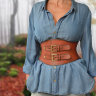Женский широкий кожаный корсетный пояс.