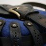 Сумка изготовлена из двух разнофактурных материалов: натуральная замша синего цвета и натуральная кожа с ручной обработкой в стиле "Винтаж".
